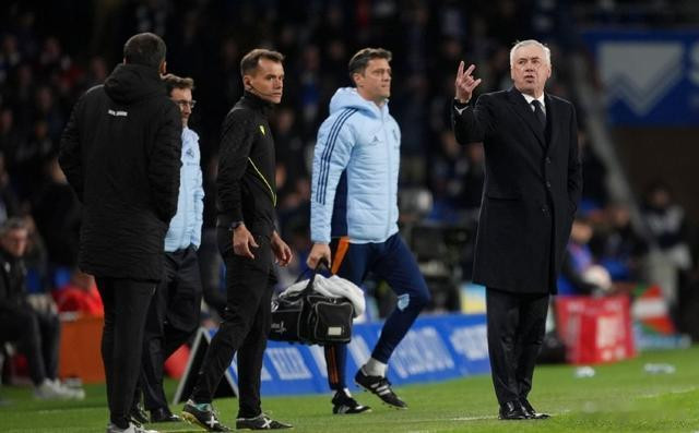 随着比赛进入75分钟之后,两队体能出现了瓶颈。皇家社会依旧在进攻端不断寻求机会,第82分钟,皇马一路快速反击到前场,楚阿梅尼脚后跟回传,跟上的贝林厄姆劲射被门将奋力挡出底线!随后的角球罚到禁区,楚阿梅尼点球点附近的劲射,又被防守球员倒地挡出禁区。安切洛蒂将卜拉欣和罗德里戈换上,继续在反击中增加威胁。补时阶段连续出现争议,首先塞瓦略斯落泪伤退,令人动容。裁判吹停比赛引发争议,读秒阶段阿拉巴禁区放倒久保健英,裁判又没表示,反而一声哨响直接结束了比赛。